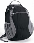 Books and laptops carry comfortably in this backpack featuring padded straps and zippered pockets.